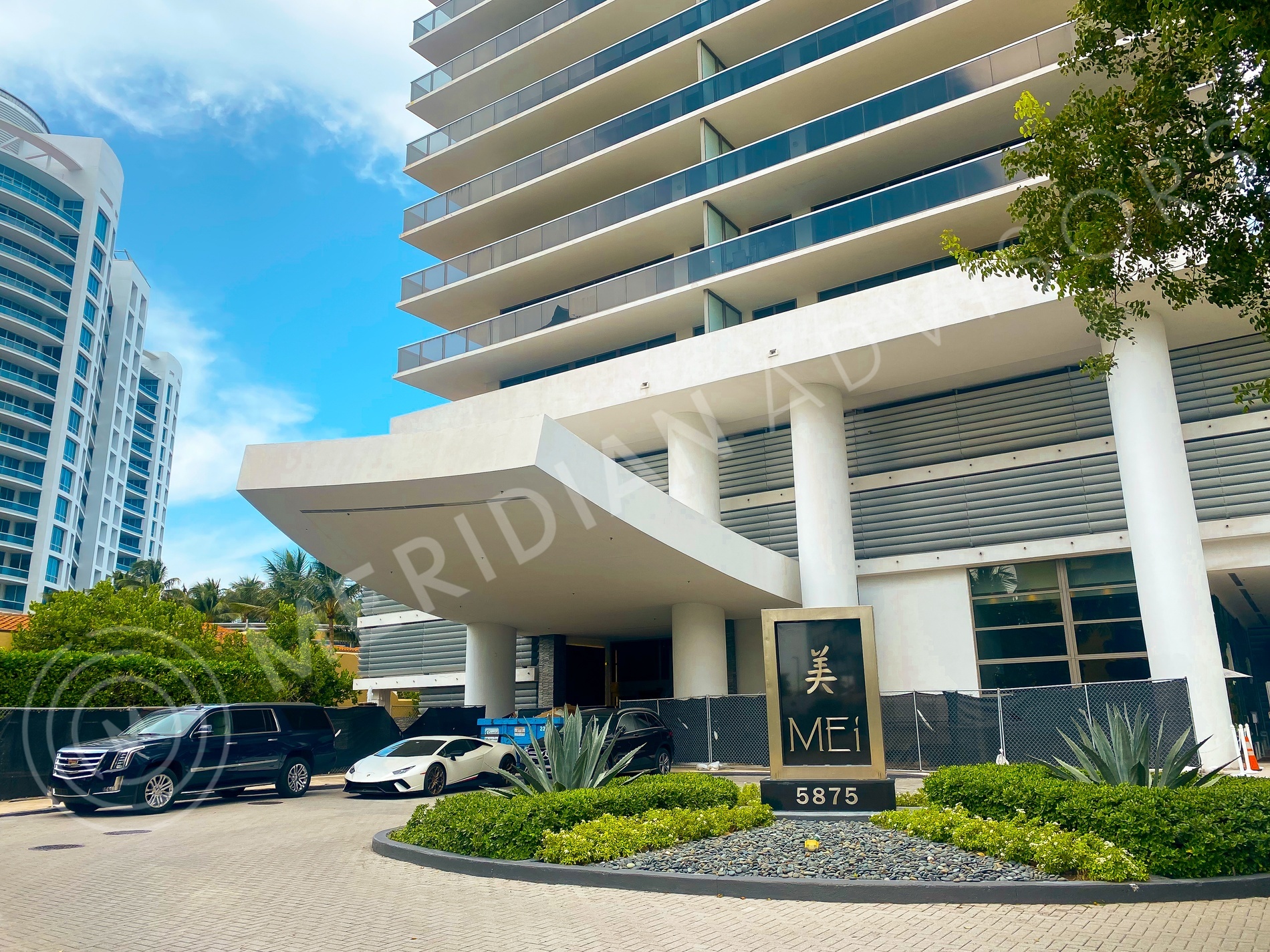MEi is the Mandarin Chinese word for beauty and femininity. This Asian-inspired building represents those qualities in a charming and intimate package. Constructed in 23008, the 22 story tower contains 135 residences with a range of one, two, or three-bedroom floor plans, as well as six two-story townhouses. Many of the units have oversized terraces, for spectacular outdoor entertaining. Residents have the ocean at their feet, as well as views additional views of the Miami Beach skyline and Indian Creek. Developed by PMG Collins (a subsidiary of Property Markets Group), the building was designed by RBL Architecture, with interiors and common spaces created by Hirsch Bedner Interior Designers.