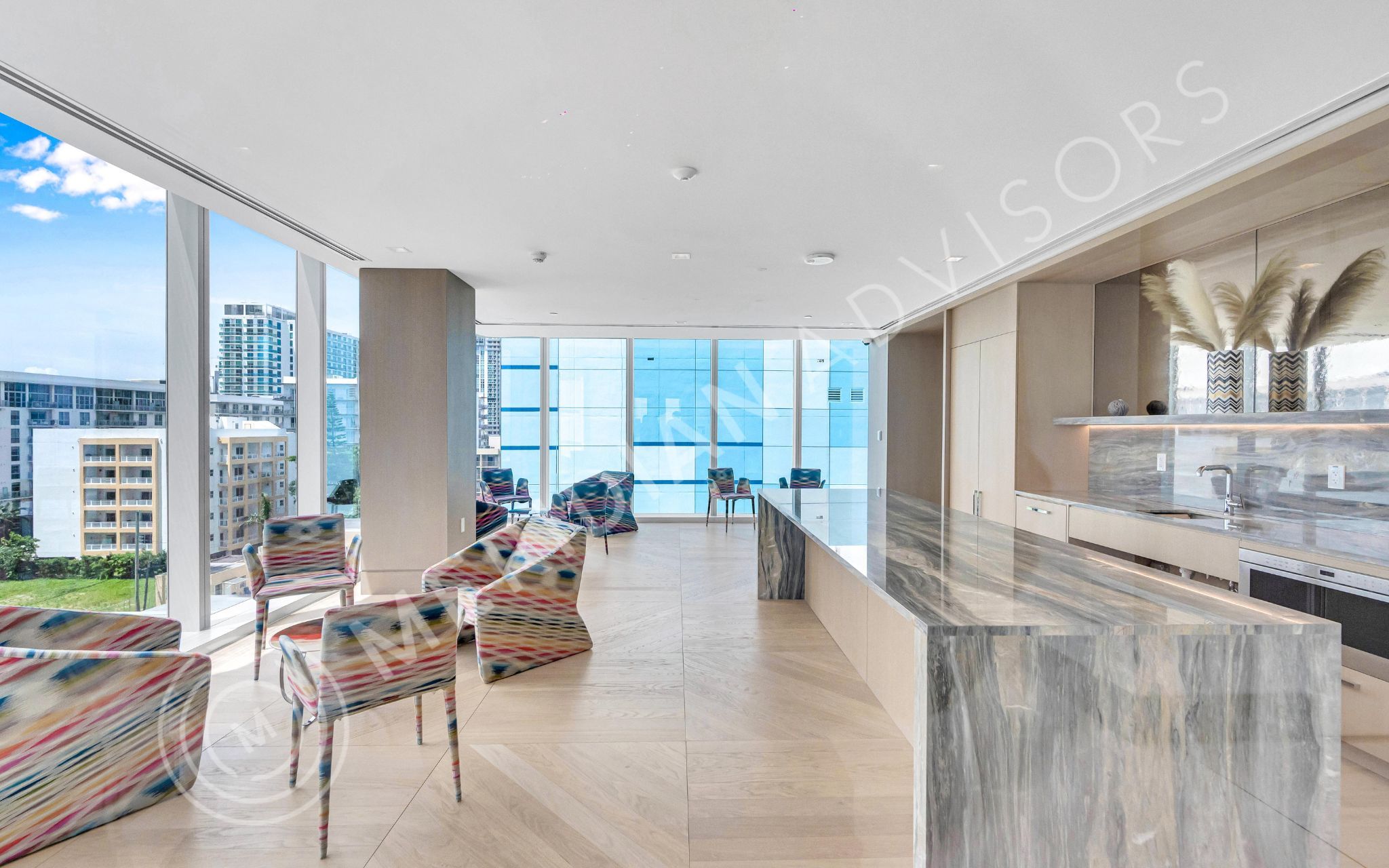 Minimalist, simplistic yet powerful and unique is what the design of Missoni Baia exemplifies. Co-founder of Asymptote Architecture, Hani Rashid describes stepping into the building as “stepping into a sculpture”. This crystalline residential tower comprises 249 one-to-five bedroom residences, each designed to have direct bay or city views. 10-foot deep balconies facing the bay and 8-foot deep balconies facing the city allows each residence to have its own unique experience. Floor-to ceiling windows make each residence feel expansive and flow-through.