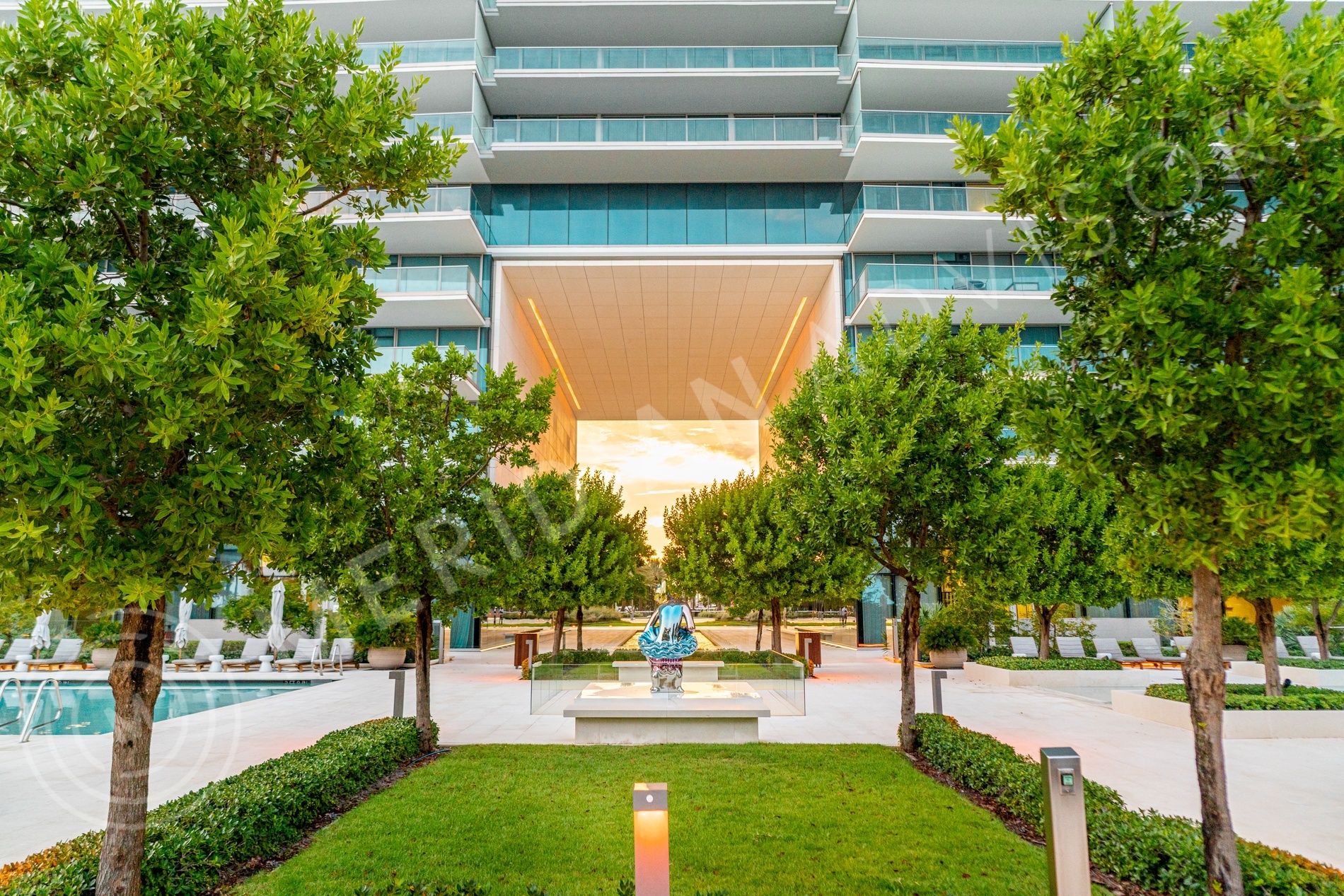 Oceana Bal Harbour’s signature feature is its pair of monumental sculptures by international art star Jeff Koons. Owned collectively by the building’s residents, the two pieces are centered along a 60-foot-high breezeway that connects Oceana’s pair of motor entrances with the vista of the Atlantic Ocean beyond, all on a dramatically symmetrical sight line.