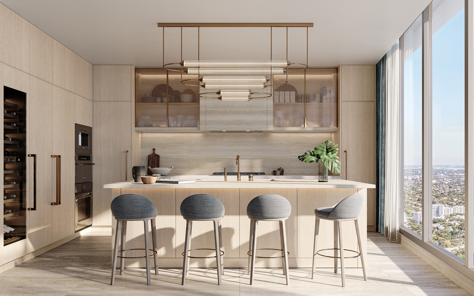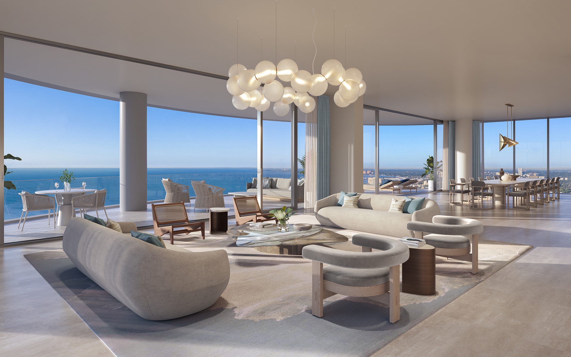 The regal towers’ design calls back to the city’s history as one of the world’s great ports-of-call. The towers are designed by RAMSA (Robert A.M Stern Architects, LLP), one of the country’s greatly respected design firms. “A gift to Miami’s skyline”, says firm partner Paul Whalen.